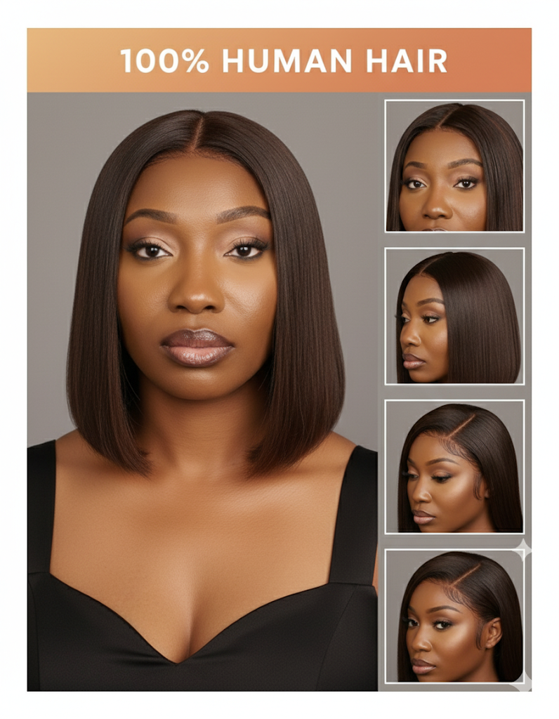 Women’S Brazilian Remy Human Hair Wig – Natural Look HD Transparent Lace Front, 150% Density High Volume, Pre Plucked Hairline & Natural Roots, Natural Brown Color, Everyday & Special Events – Natural Look Human Hair Wig, Versatile Hairpiece, Sleek Hairstyle, Premium Quality, Fashion Accessory, Natural Hair Wig For Woman/girl, Realistic Wig, Glueless Front Wig, Cheap Human Hair Wig